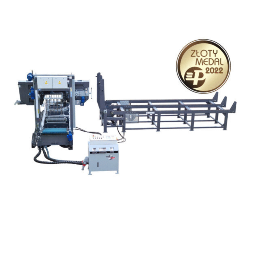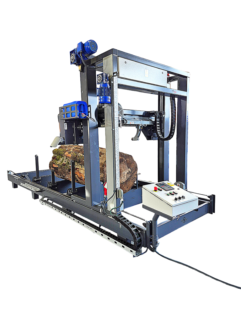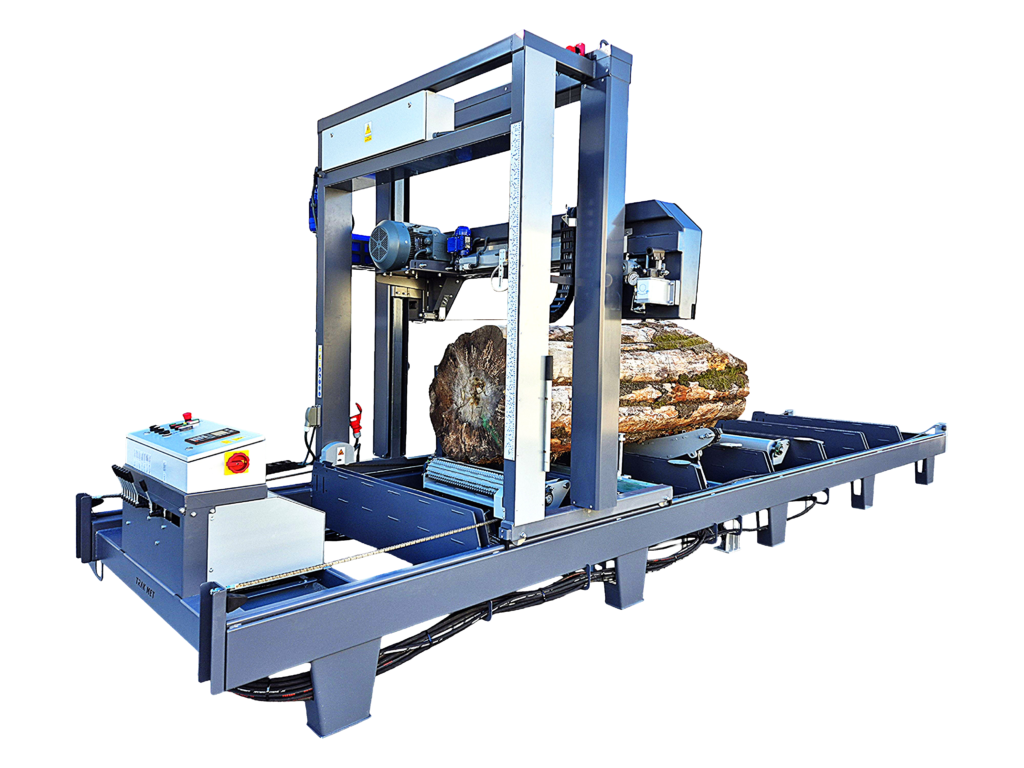 Seria maszyn uniwersalnych do obróbki drewna wielkogabarytowego. Dzięki zastosowaniu wzmocnionej konstrukcji podtorza oraz nowoczesnej głowicy tnącej z dynamicznym naprężaniem brzeszczotu, urządzenie zapewnia stabilność, wysoką dokładność (±1 mm) i maksymalną efektywność pracy. Średnia wydajność w zależności od gatunku drewna, grubości kłody i rodzaju brzeszczotu wynosi 2–3 m³/h.