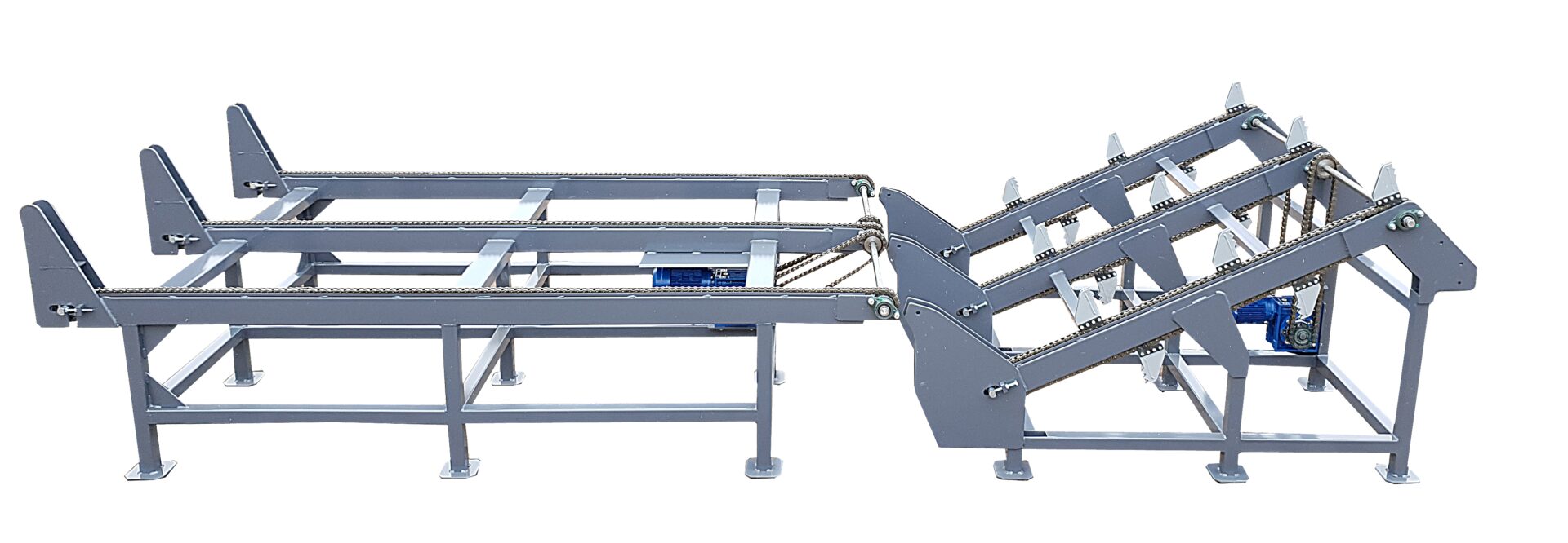 Podajnik znajduje zastosowanie m.in. przy takich maszynach jak piło-łuparki, traki tarczowe oraz traki taśmowe pionowe rozdzielcze. W zależności od potrzeb użytkownika, za częścią rozdzielającą można opcjonalnie zamontować podajnik wzdłużny łańcuchowy lub łańcuchowy z obrotem kłody, co dodatkowo zwiększa elastyczność całej linii.