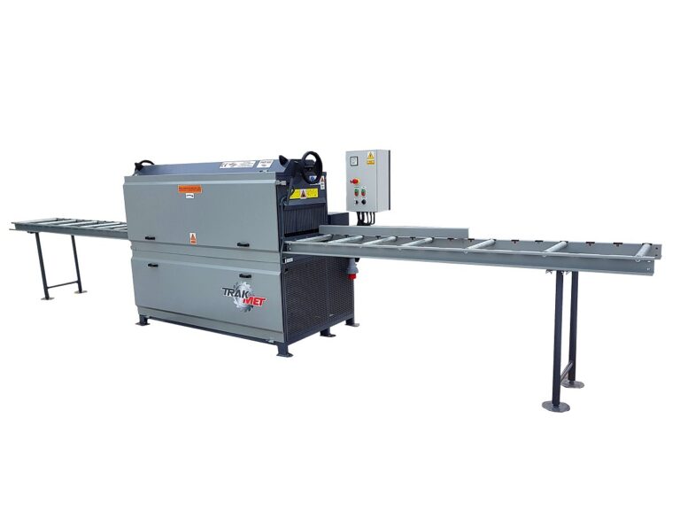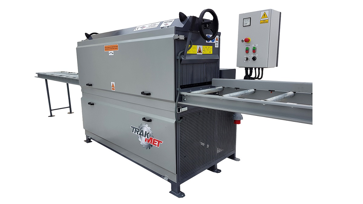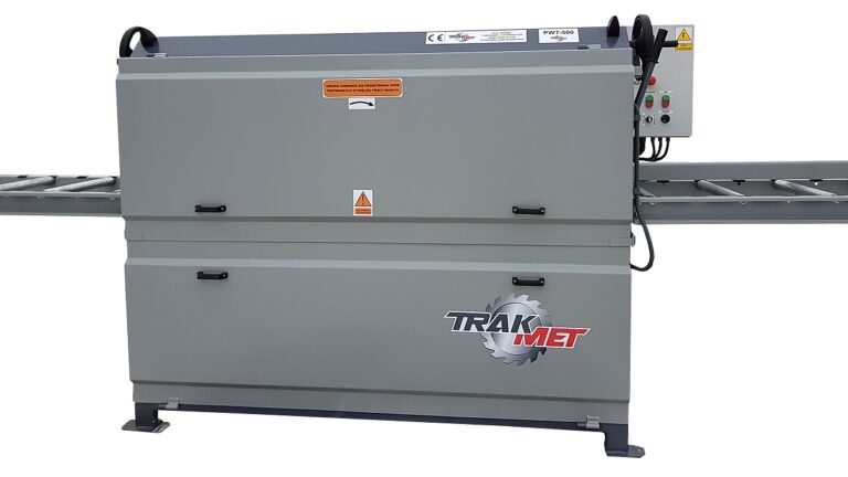Maszyna została wyposażona w podwójne walce posuwu (zarówno od strony podającej, jak i odbiorczej) oraz niezależne dociski górne na siłownikach gazowych, co zapewnia stabilne i płynne prowadzenie materiału – także w przypadku długich, ciężkich brusów oraz elementów o nierównej powierzchni (zafalowania, zgrubienia). Dzięki temu PWT-500 wyróżnia się niezawodnością i wysoką kulturą pracy w warunkach przemysłowych.