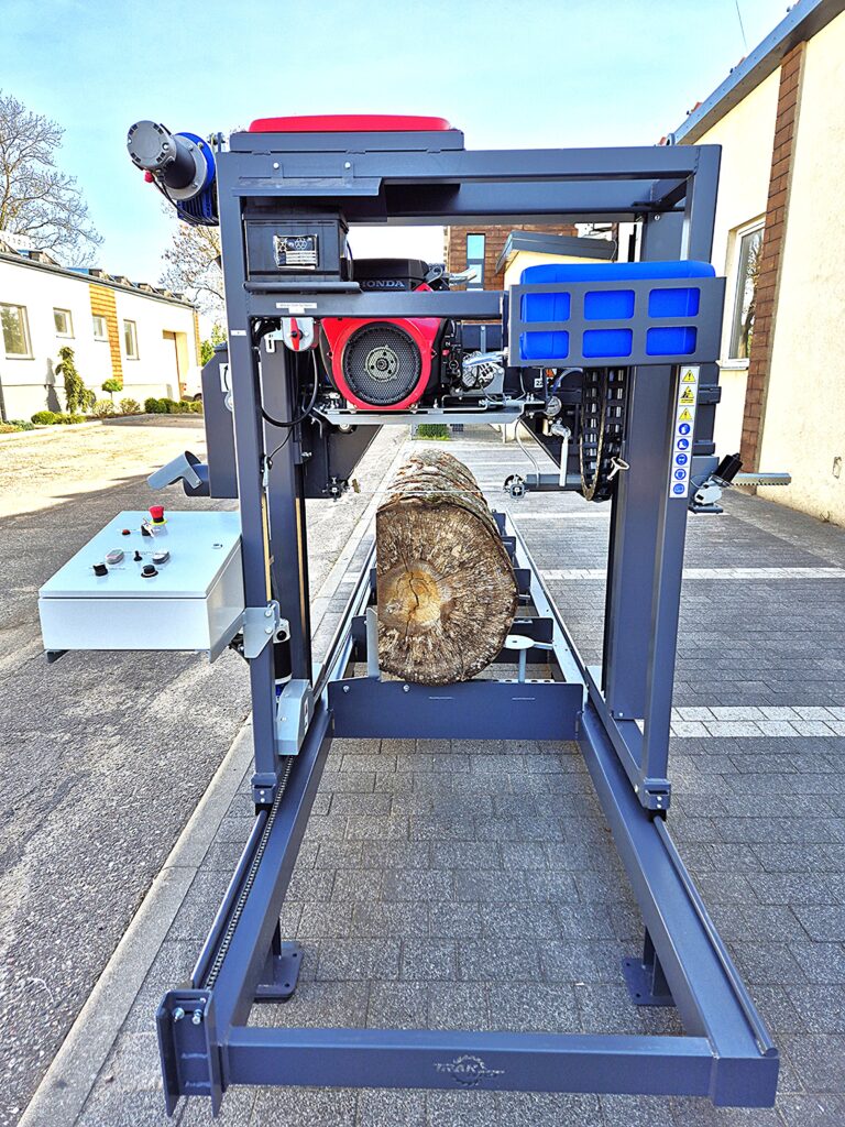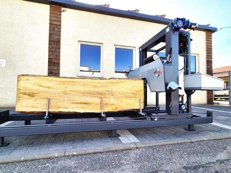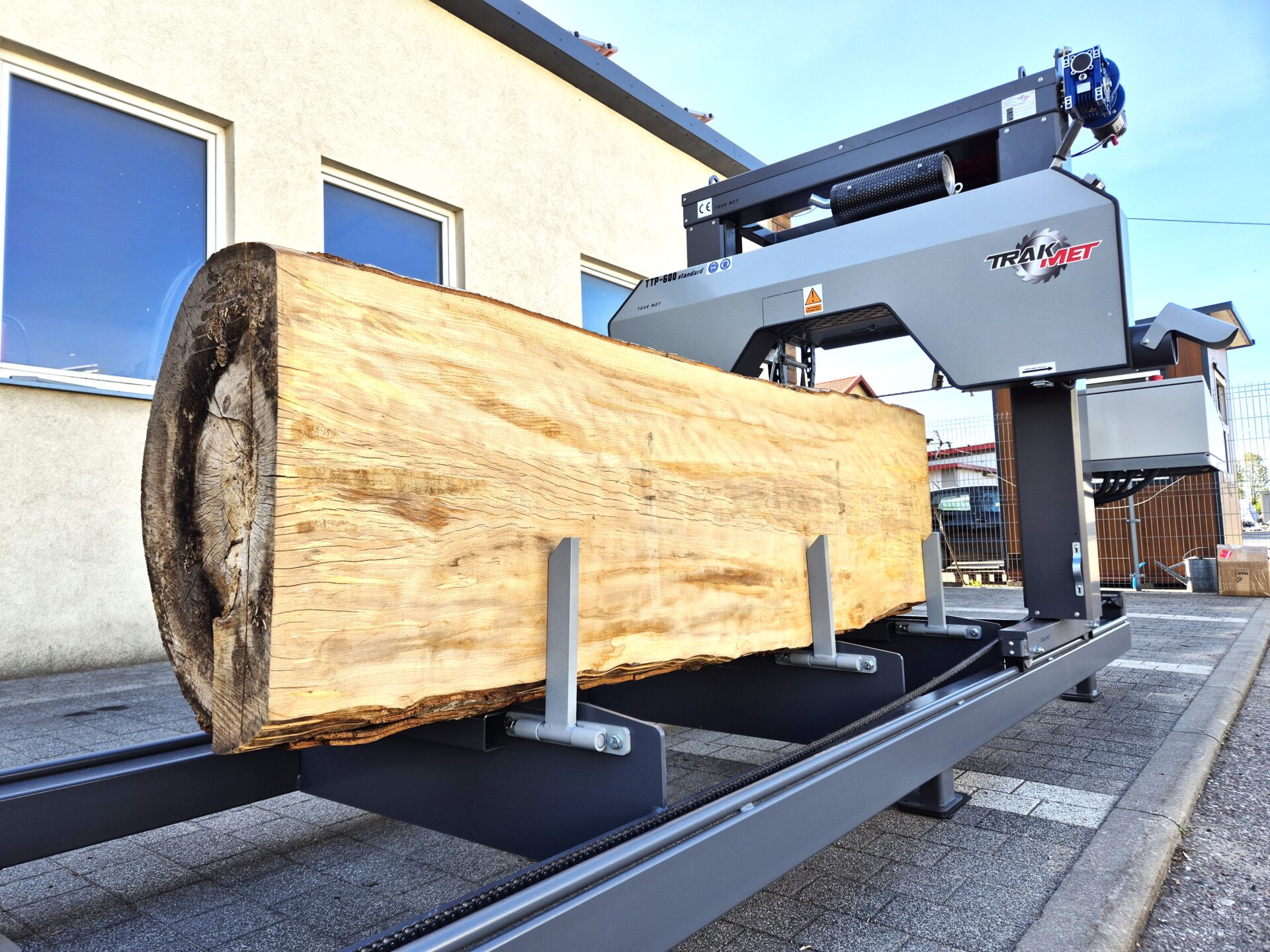Średnia wydajność cięcia wynosi 1–2 m³/godz., zależnie od średnicy oraz rodzaju obrabianej kłody. Dzięki precyzyjnemu prowadzeniu taśmy i dokładności rzazu na poziomie 0,5 mm, trak pozwala na uzyskanie dużych oszczędności materiału, co czyni go szczególnie atrakcyjnym rozwiązaniem dla tartaków, zakładów stolarskich oraz przemysłu meblowego.