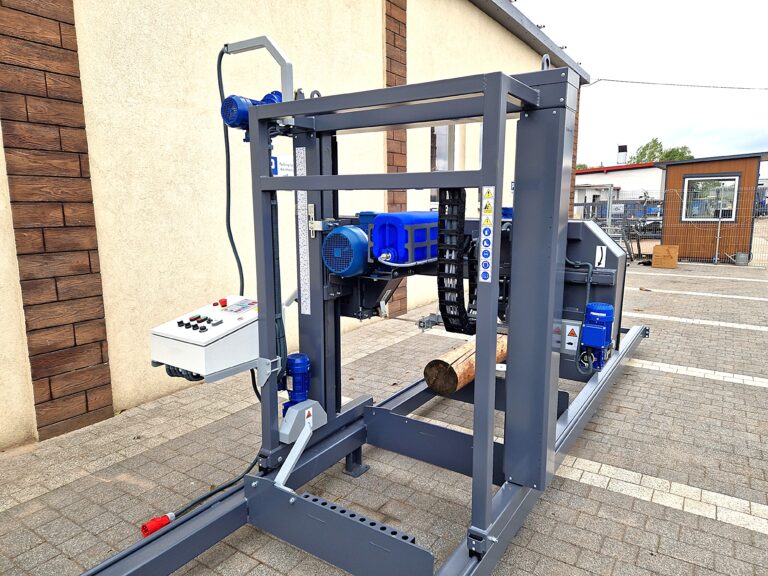 Konstrukcja maszyny zapewnia wysoką wydajność przy zachowaniu maksymalnej oszczędności materiału oraz dokładności cięcia na poziomie ±0,5 mm. Średnia wydajność urządzenia wynosi 1–2 m³/h, w zależności od średnicy i gatunku kłody oraz wymaganej grubości tarcicy.