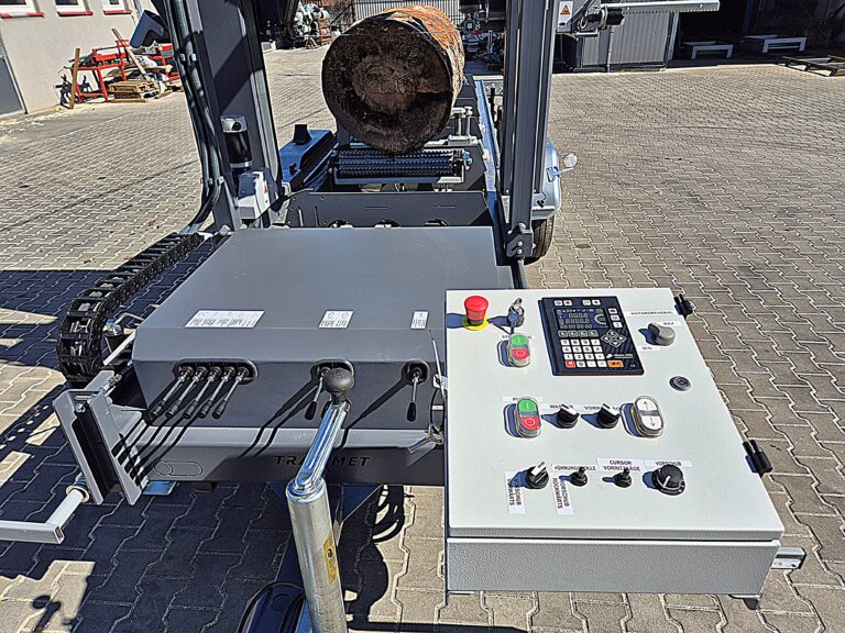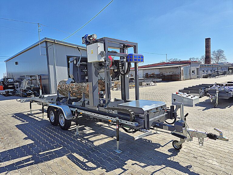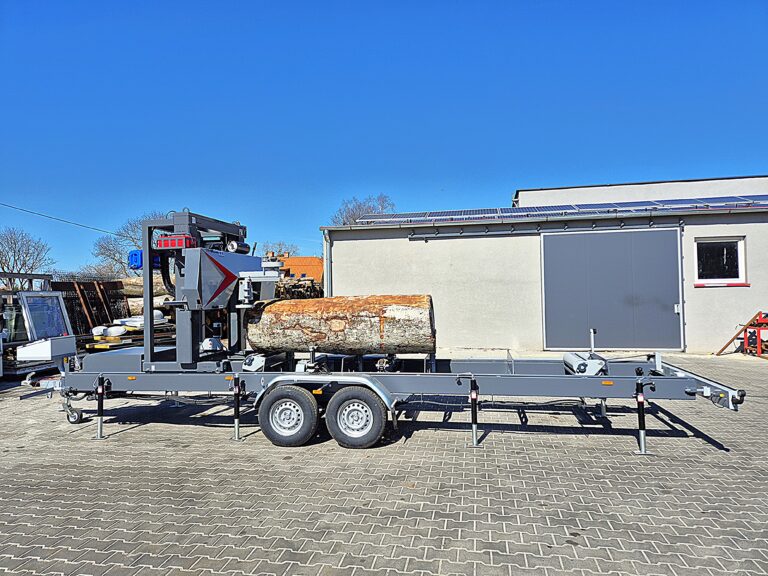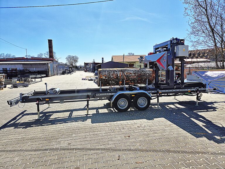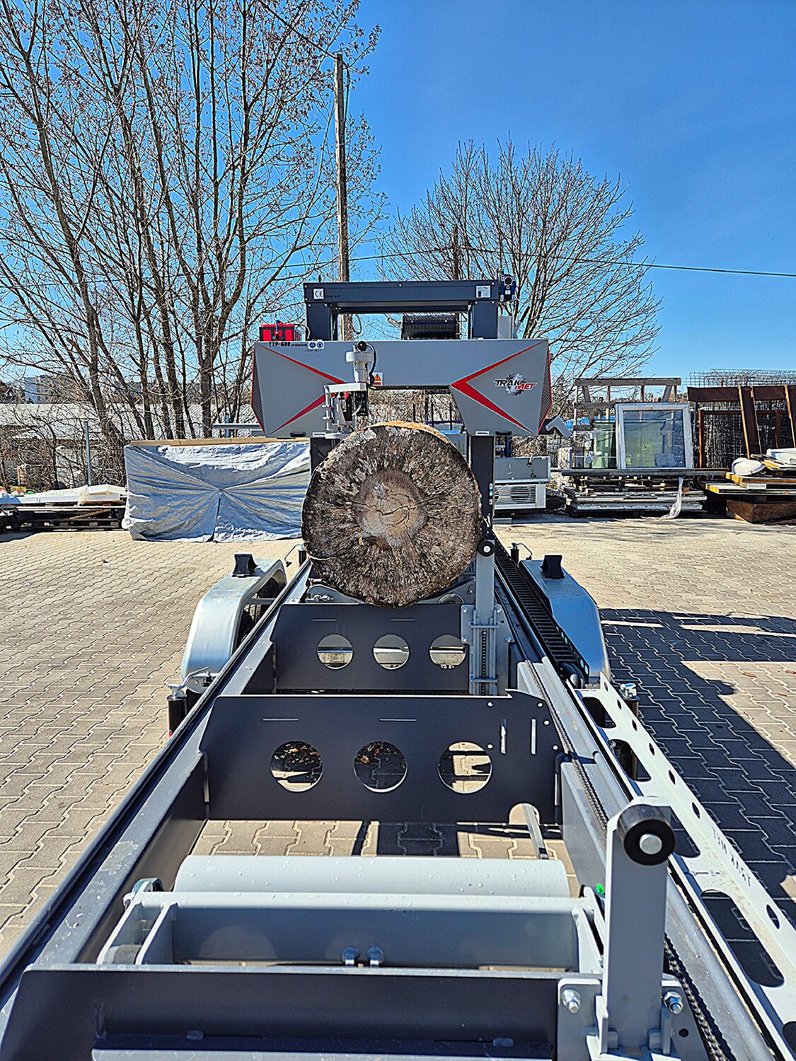 Konstrukcja oparta na kołach prowadzących Ø700 mm z bieżnią PK zapewnia stabilne prowadzenie brzeszczotu i maksymalną trwałość. Taśma tnąca o szerokości 50 mm gwarantuje wysoką wydajność i precyzję piłowania, a zastosowane rozwiązania hydrauliczne umożliwiają wygodne manewrowanie nawet ciężkimi kłodami przez jednego operatora.